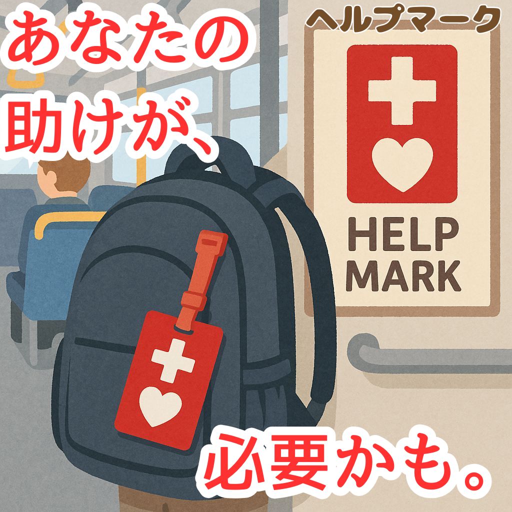 ヘルプマークはこちらのマークで、東京都福祉保健局によって作成されたものだそうです。