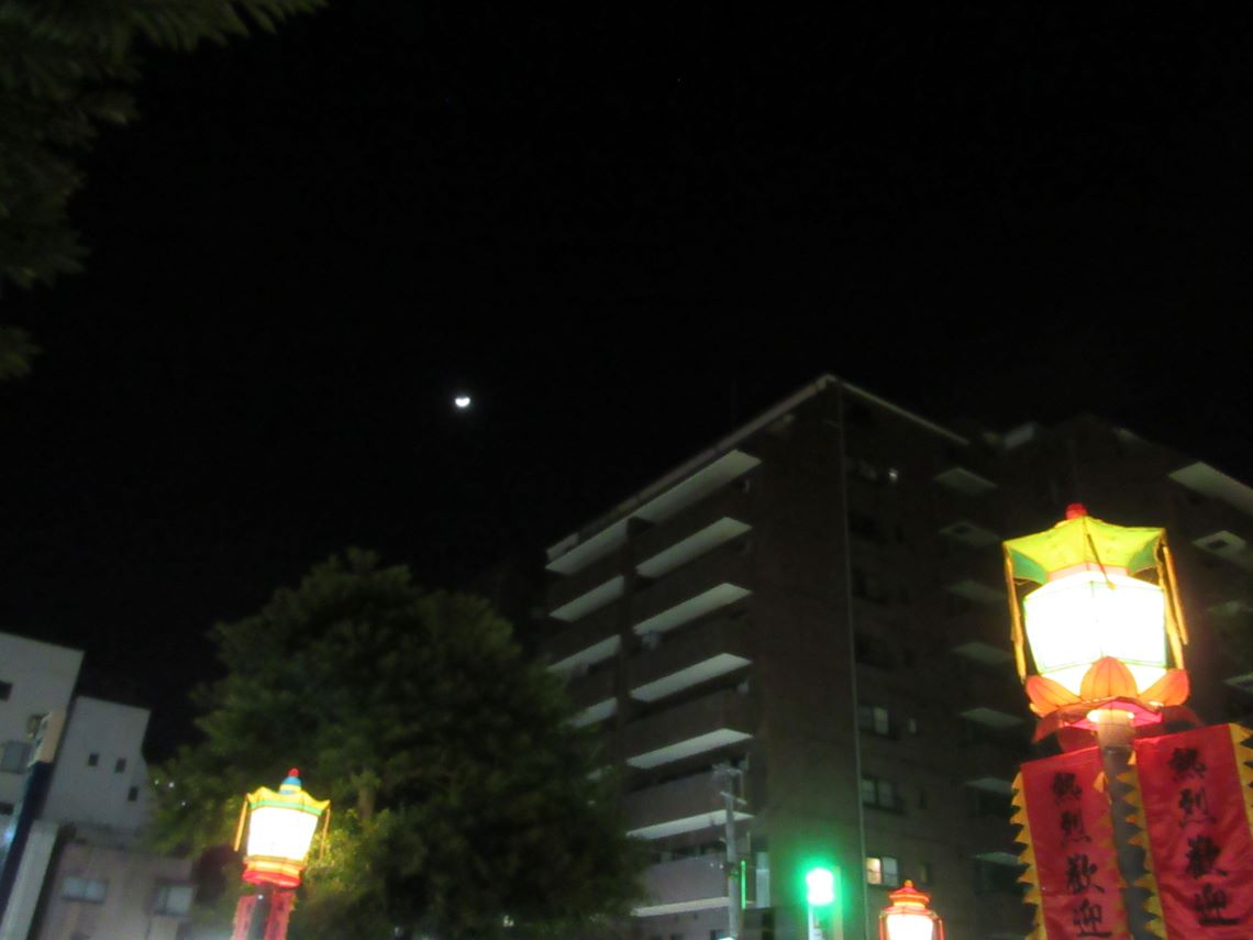 北側から出ると、月がきれいでした。