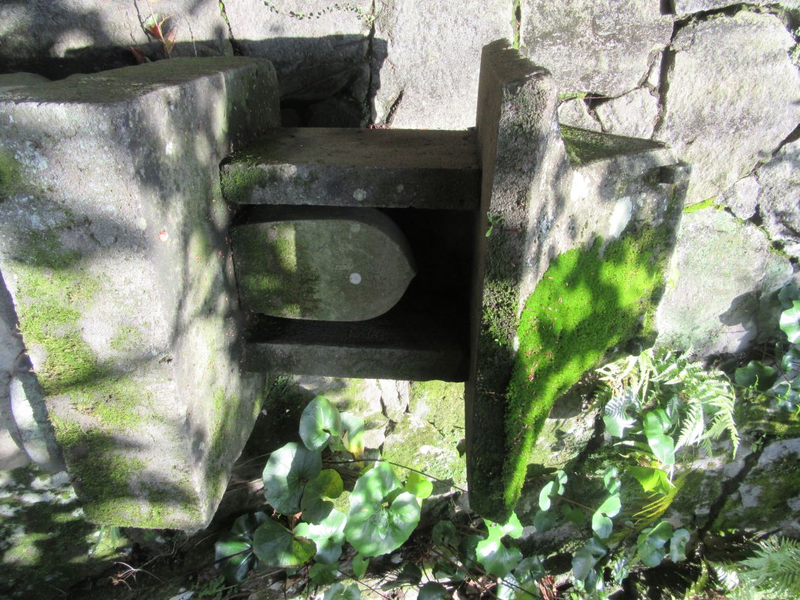 対となっているこちらの狛犬さんは、ニンマリとした表情ですね。苔も生えており、雰囲気があります。